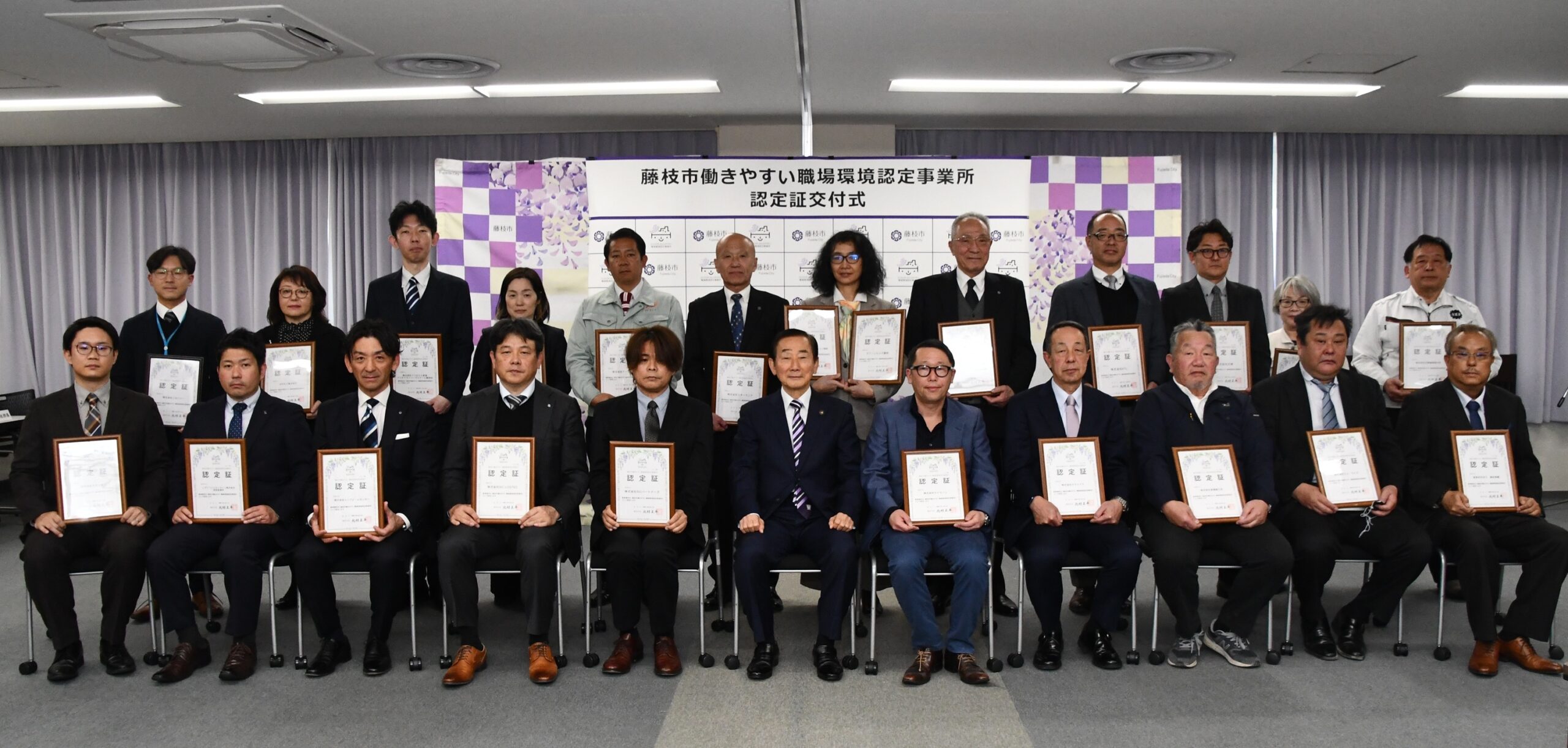 去る2月3日、藤枝市役所にて開催されました『藤枝市働きやすい職場環境事業所』の認定証交付式に出席いたしました。